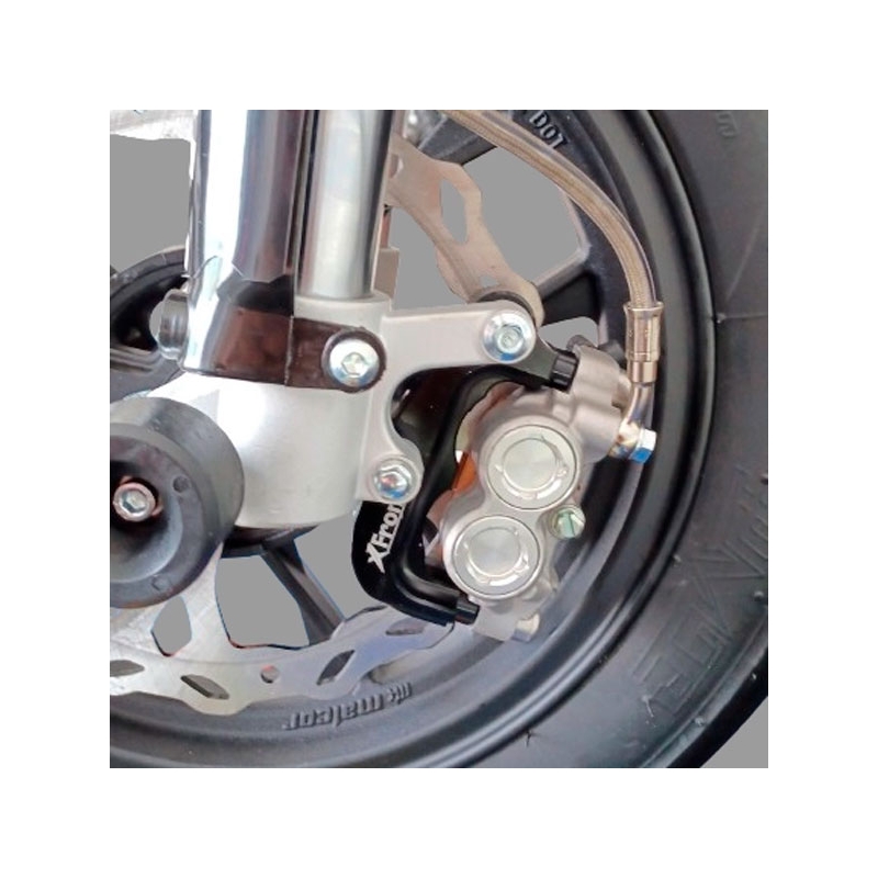 Soporte o adaptador para frenos Fórmula 4 pistones, válido para horquillas Marzocchi Copy y similares. Medida entre agujeros de tornillos para soporte de horquilla 52mm. Nuevo modelo color negro, menos peso que modelos anteriores!