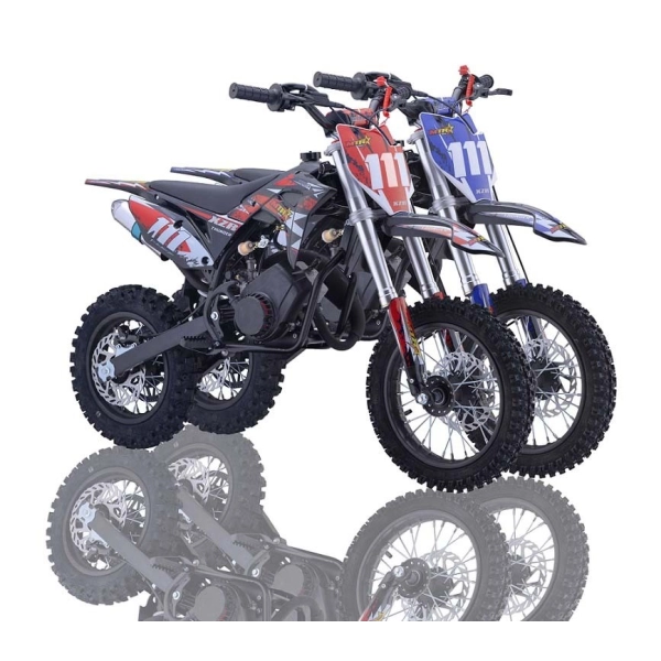 Minicross MTR MALCOR Thunder 65c.c. 2 tiempos. La moto perfecta desde los 5 años de edad, con una altura asiento-suelo de 63cm y disponible en color rojo y azul.
