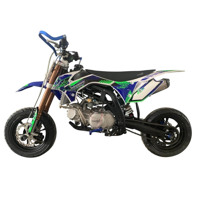 Pit Bike Malcor Super Racer 160cc con motor Z155, la evolución de la gama Malcor diseñada para pilotos de mayor envergadura. Una pit bike de asfalto que utiliza una geometría más alta y espaciosa, sin sacrificar componentes de calidad.